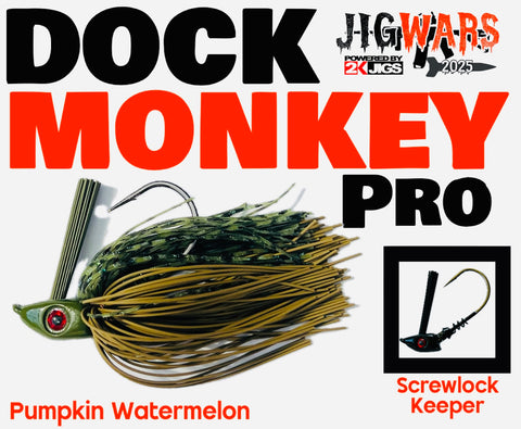 THIS YEAR WE MADE THE DOCK MONKEY EVEN BETTER! INTRODUCING THE DOCK MONKEY PRO! WE REMOVED THE LEAD BAIT KEEPER AND REPLACED IT WITH OUR SCREWLOCK KEEPER! THIS KEEPER ENSURES YOUR PLASTIC TRAILER WILL NEVER SLIDE DOWN THE HOOK ON THE CAST, SKIP OR FISH CATCH!