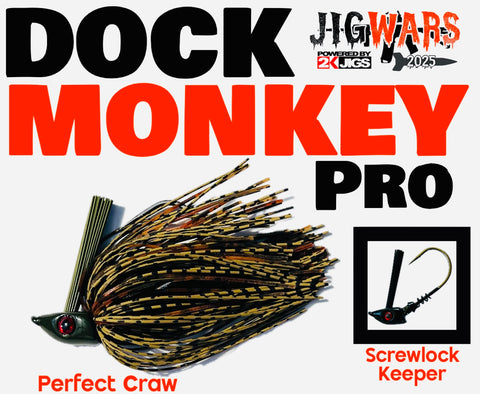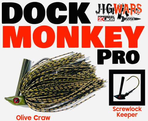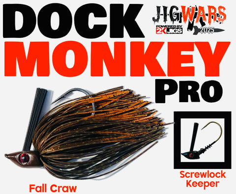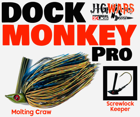 THIS YEAR WE MADE THE DOCK MONKEY EVEN BETTER! INTRODUCING THE DOCK MONKEY PRO! WE REMOVED THE LEAD BAIT KEEPER AND REPLACED IT WITH OUR SCREWLOCK KEEPER! THIS KEEPER ENSURES YOUR PLASTIC TRAILER WILL NEVER SLIDE DOWN THE HOOK ON THE CAST, SKIP OR FISH CATCH!