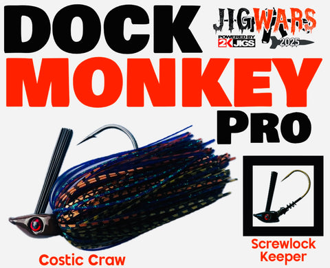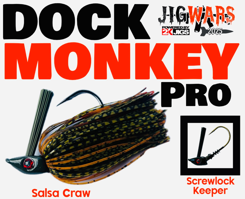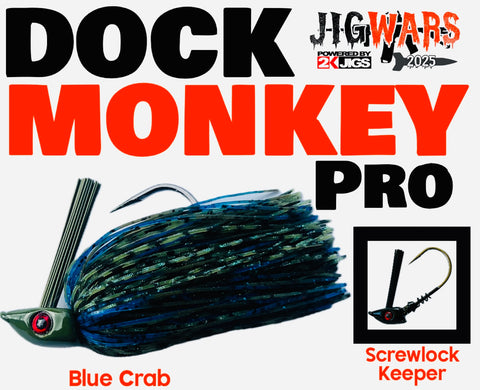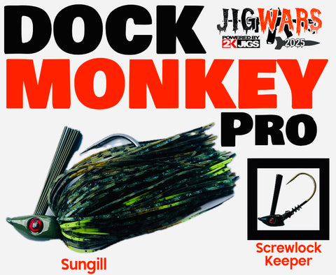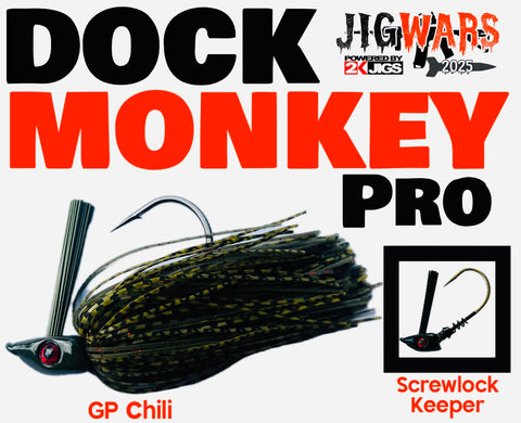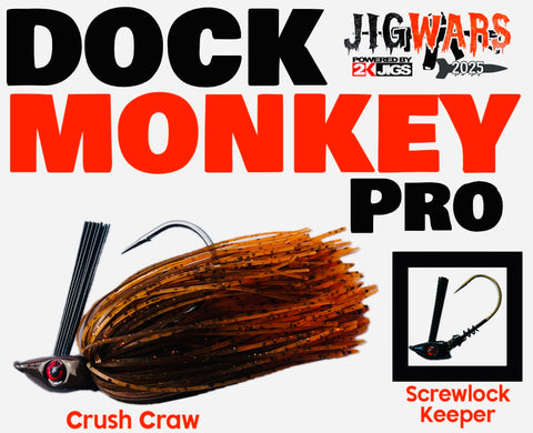 THIS YEAR WE MADE THE DOCK MONKEY EVEN BETTER! INTRODUCING THE DOCK MONKEY PRO! WE REMOVED THE LEAD BAIT KEEPER AND REPLACED IT WITH OUR SCREWLOCK KEEPER! THIS KEEPER ENSURES YOUR PLASTIC TRAILER WILL NEVER SLIDE DOWN THE HOOK ON THE CAST, SKIP OR FISH CATCH!