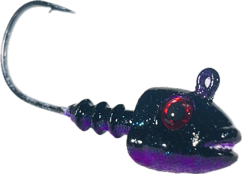 IF YOU ARE IN THE MARKET FOR A DO-IT ALL 3/8oz JIG LOOK NO FURTHER! OPEN MOUTH DESIGN AND CHUBBY CHEEKS DISPLACES WATER AND CREATES A TERRIFIC HEAD WOBBLE! MOLDED AROUND A LIGHT WIRE 3/0 ULTRA POINT HOOK, THIS JIG IS PERFECT FOR SMALL SWIMBAITS, CRAWS, AND GRUBS. FISH IT VERTICALLY WITH FORWARD FACING SONAR, OR CAST AND RETRIEVE SLOWLY!