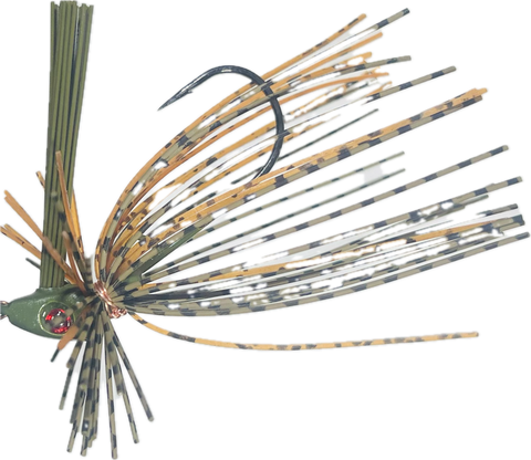 BEST TO BE USED WITH SPINNING TACKLE AND LIGHT LINE. JIG OFFERS A SLEEK STAND-UP STYLE HEAD. THIS DESIGN WILL CUT THROUGH VEGETATION WITH EASE AND SKIP ACROSS THE WATER LIKE NO OTHER JIG ON THE MARKET!