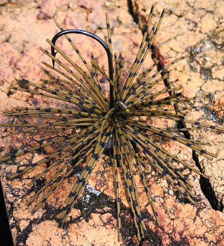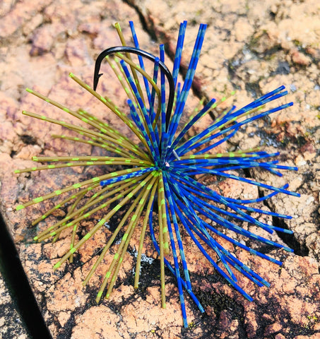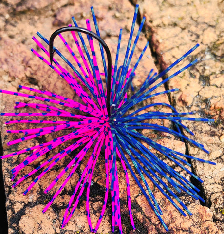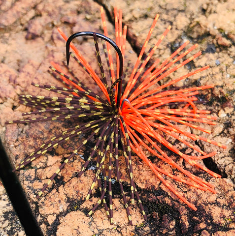 We took our popular Ned Jig and added a little bang if the form of a Candy Skirt! The Ned XL Candy pairs with a 2/0 Mustad Hook and a wire keeper. Copper hand tied Living Rubber puff skirt! This is the perfect jig to add a little something extra to your Ned rig while giving it the body those big ones love to eat!