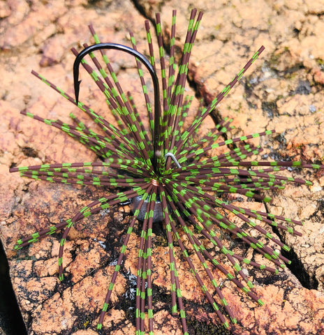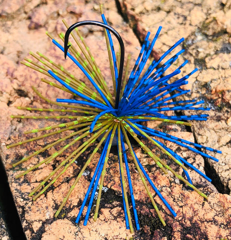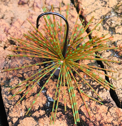 We took our popular Ned Jig and added a little bang if the form of a Candy Skirt! The Ned XL Candy pairs with a 4/0 Mustad Hook and a wire keeper. Copper hand tied Living Rubber puff skirt! This is the perfect jig to add a little something extra to your Ned rig while giving it the body those big ones love to eat!
