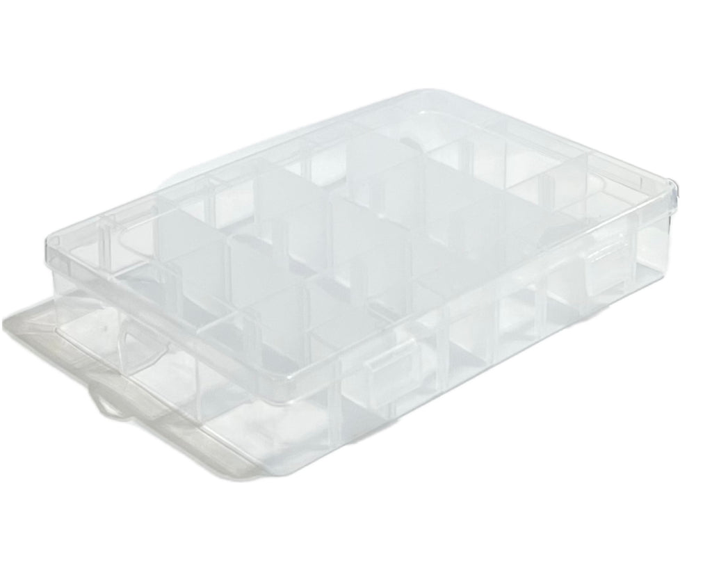 THE 2K TACKLE TRAY IS PERFECT FOR HOLDING TERMINAL TACKLE OR YOUR GO TO SET OF JIGS. THE 9 COMPARTMENT GRID SYSTEM WITH REMOVEABLE SLIDES ALLOWS YOU TO ADJUST THIS BOX TO FIT YOUR NEEDS! EASILY FIT UP TO 18 SKIRTED JIGS (3 JIGS PER 6 COMPARTMENT FIGURATION) DOUBLE SNAP LATCHED ENSURE THIS BOX TO STAY SECURE WHEN CLOSED DOWN.