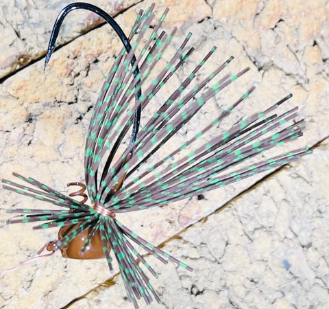 MODIFIED FOOTBALL STYLE HEAD WITH A FLAT BOTTOM TO KEEP YOUR BAIT UPRIGHT AROUND ANY TYPE OF STRUCTURE.