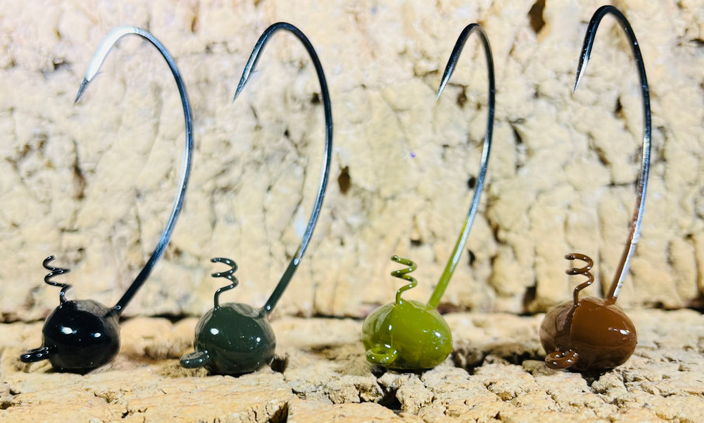 MODIFIED FOOTBALL STYLE HEAD WITH A FLAT BOTTOM TO KEEP YOUR BAIT UPRIGHT AROUND ANY TYPE OF STRUCTURE.