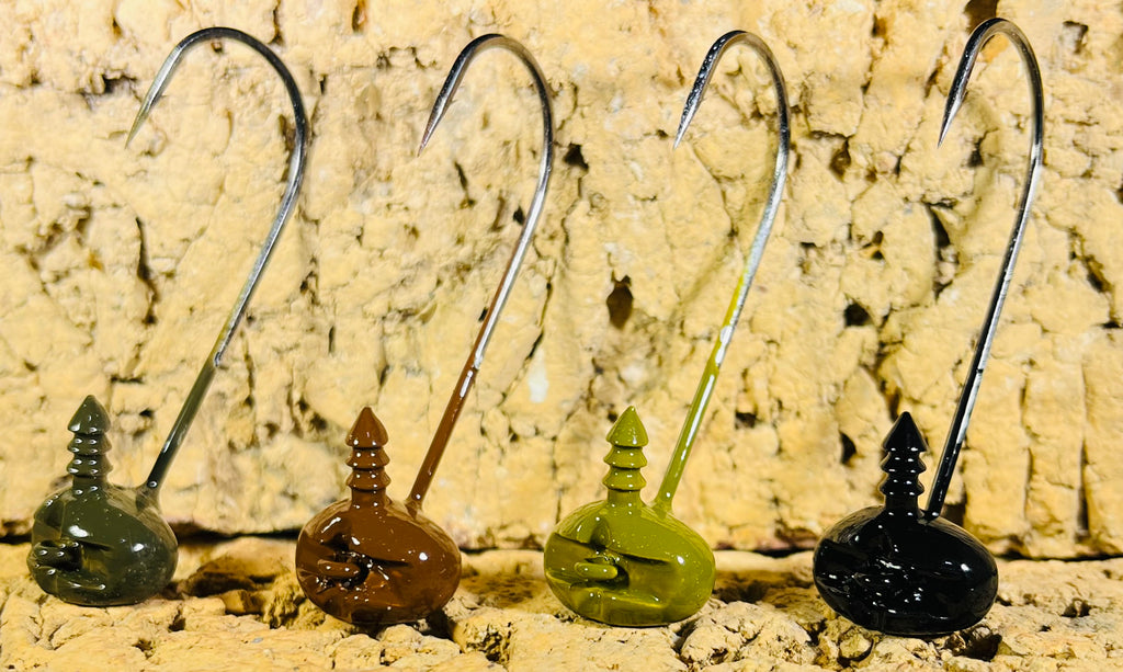FOOTBALL HEAD STYLE JIG WITH A RECESSED LINE TIE TO PROTECT YOUR KNOT AROUND HARD STRUCTURE.