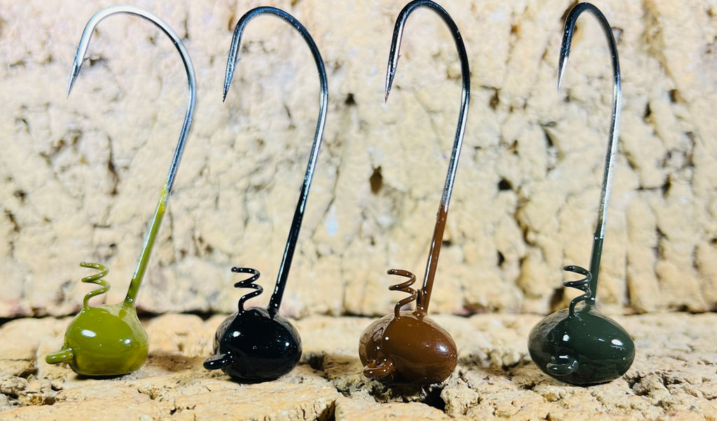 MODIFIED FOOTBALL STYLE HEAD WITH A FLAT BOTTOM TO KEEP YOUR BAIT UPRIGHT AROUND ANY TYPE OF STRUCTURE!