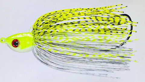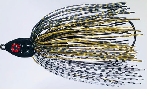 The New Scorpion Swim Jig is the ultimate weedless swim bait head packed with unbelievable action! The swing hook is not new to the fishing market but the way we have constructed this product without the use of a split ring set this bait apart from others. Wrapped around the line tie of the 5/0 Gamakatsu EWG Hook is a molded eyelet to ensure maximum strength and durability! We paired this connection with a grass cutting swim head that provides the perfect wobble to entice those hungry bass! The swinging hook brings your swim bait to life unlike a standard molded hook could ever offer! Available in 6 hand tie Reptile Rubber colors in 3/8oz and 1/2oz!