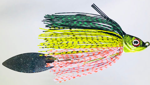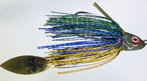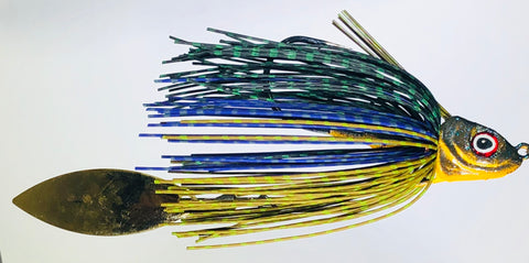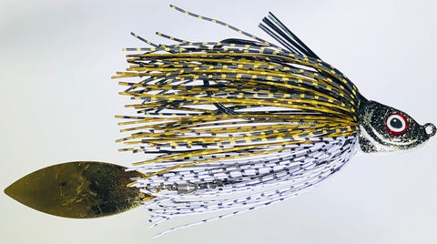 We took the best swim jig on the market and gave it a sweet up grade! Introducing the all new Deposit Under Spin! We attached a #4 willow blade to a heavy duty stainless wire molded into the head at the perfect length to add that awesome flash to the bottom of the swim jig! This wire allows the angler to tune the blade in the positions suited for their style! Available in 6 hand tied Reptile Rubber colors in 3/8oz and 1/2oz, while giving you the chose between silver and gold blades!